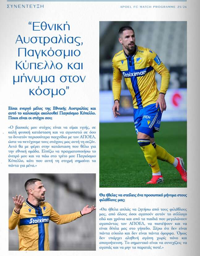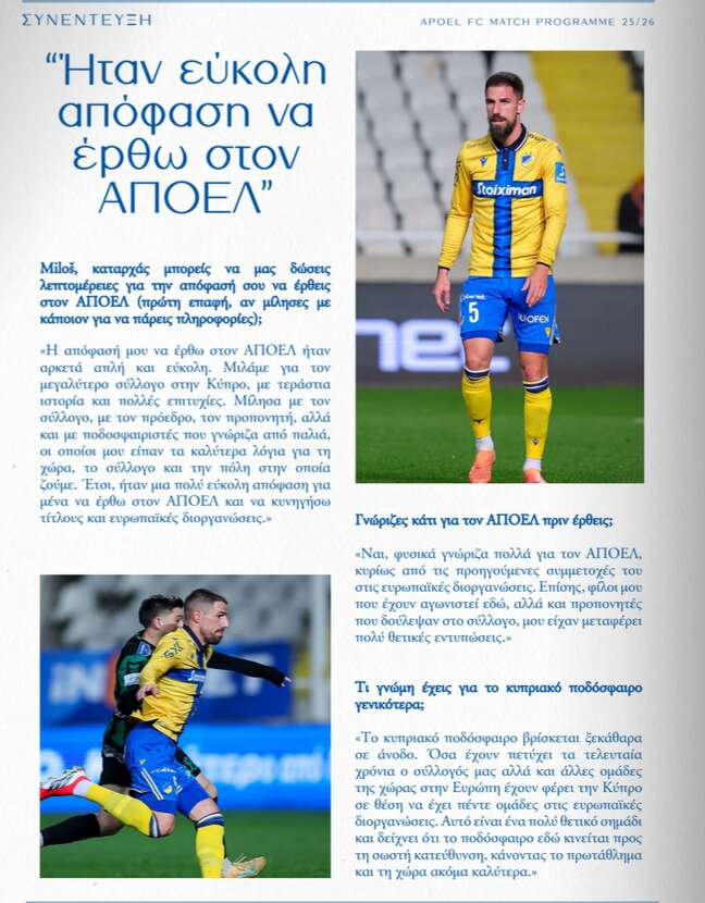 ΣΥΝΕΝΤΕΥΞΗ “ΗΤΑΝ ΕΥΚΟΛΗ ΑΠΟΦΑΣΗ ΝΑ ΕΡΘΩ ΣΤΟΝ ΑΠΟΕΛ” Posted by Nick The Greek 08.02.2026 Στο match programme του ΑΠΟΕΛ για το ντέρμπι με την ΑΕΚ φιλοξενείται συνέντευξη του Ντέγκενεκ.