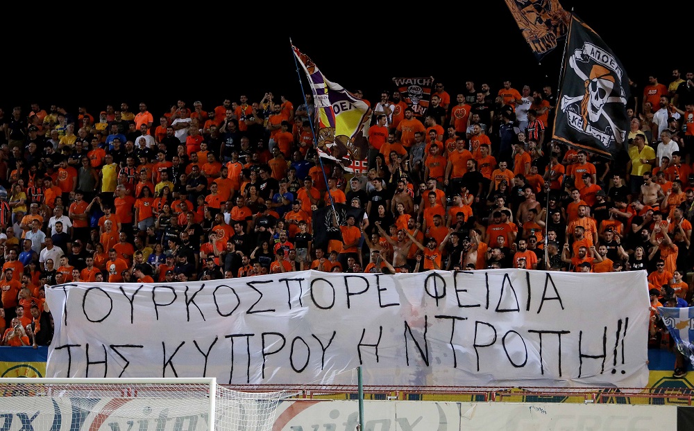 Οι οργανωμένοι φίλοι του ΑΠΟΕΛ αντέδρασαν δημόσια, αναρτώντας πανό με ιδιαίτερα σκληρό μήνυμα προς τον ευρωβουλευτή Φειδία Παναγιώτου. Η οργή των οπαδών μας πυροδοτήθηκε από όσα ειπώθηκαν στο τελευταίο του διαδικτυακό Podcast, όπου αναφορές για τον ήρωα της ΕΟΚΑ, Γρηγόρη Αυξεντίου, χαρακτηρίστηκαν ως άκρως προσβλητικές. Το περιεχόμενο εκείνης της εκπομπής προκάλεσε έντονη κατακραυγή και ευρύτατες αντιδράσεις στην κυπριακή κοινωνία, με τους οπαδούς της ομάδας μας να στέλνουν το δικό τους ξεκάθαρο μήνυμα από τις κερκίδες.