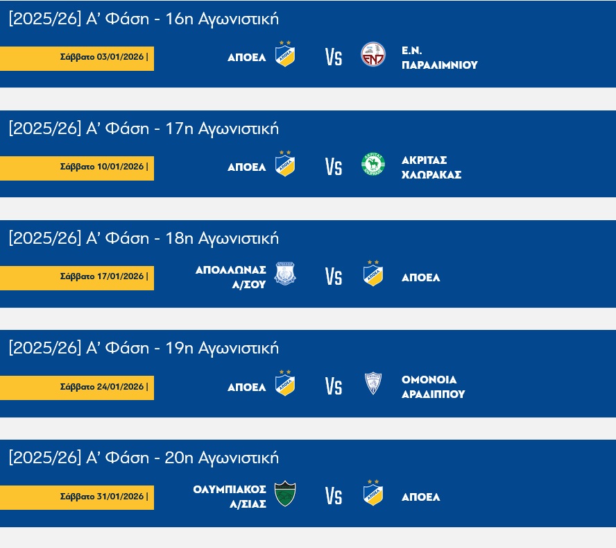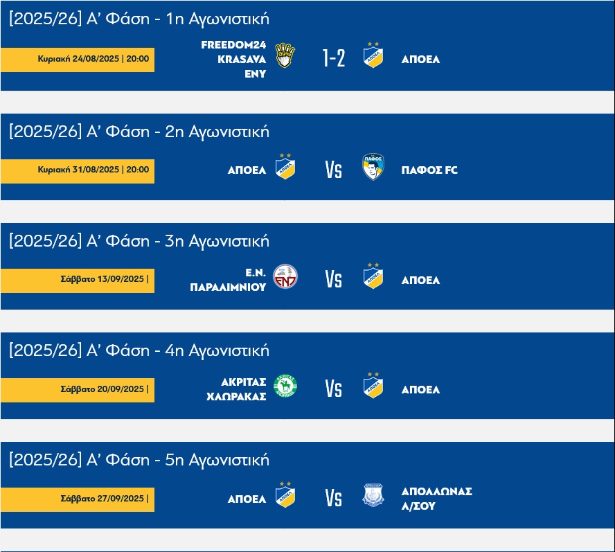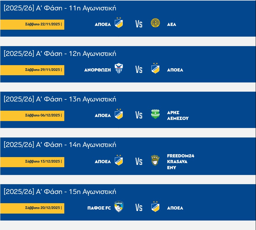 • ΠΡΟΓΡΑΜΜΑ ΑΠΟΕΛ