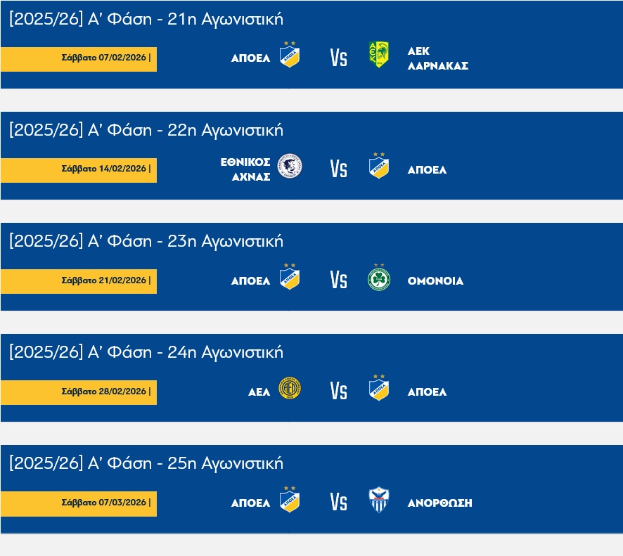 • ΤΟ ΠΡΟΓΡΑΜΜΑ ΤΟΥ ΑΠΟΕΛ 17.03.2026